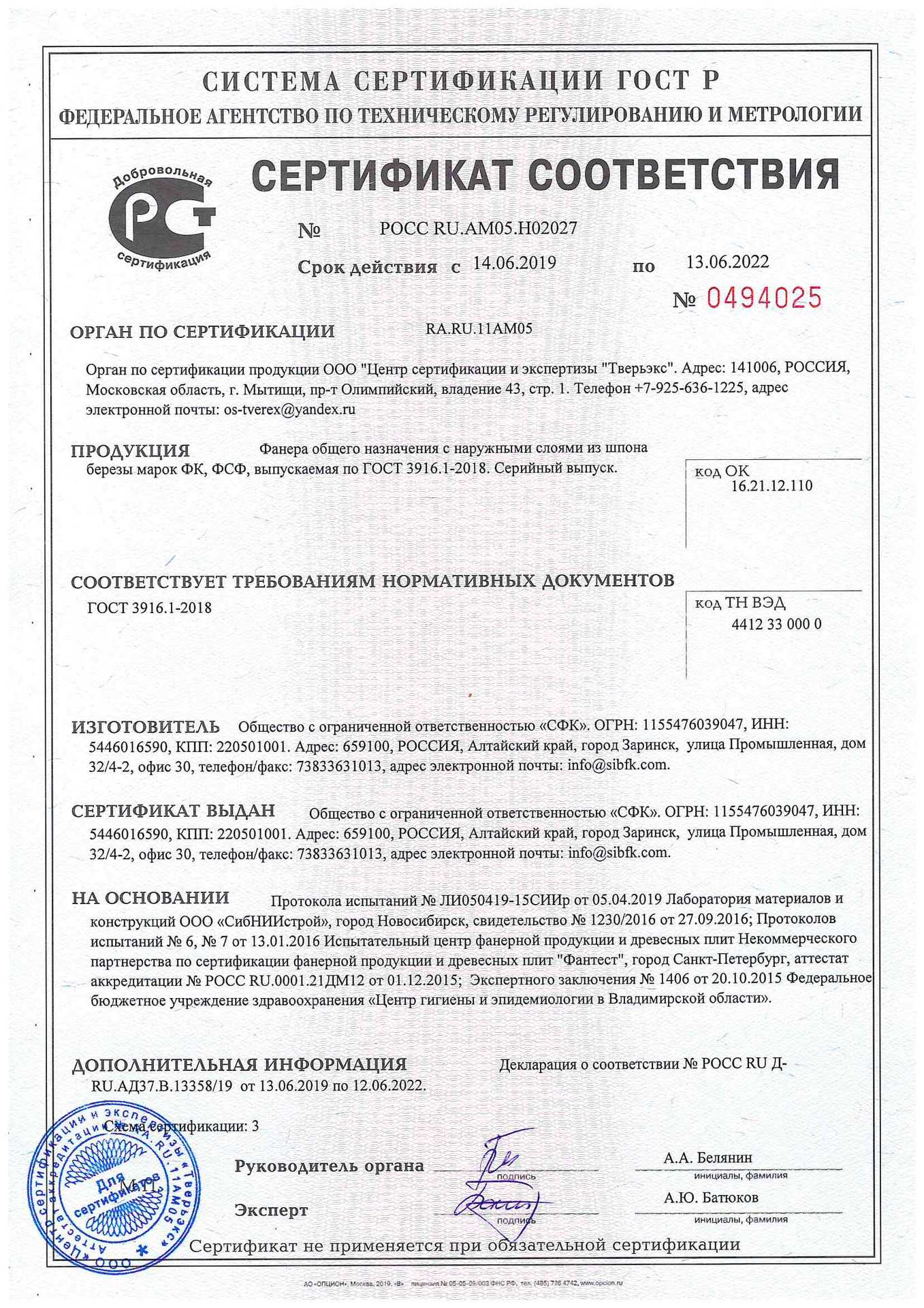 Сертификаты продукции